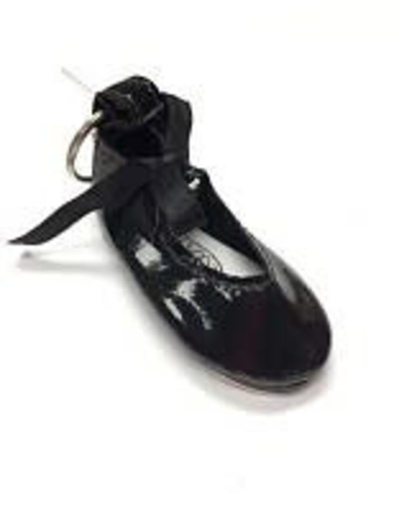 Shiny, black and adorable! These mini tap shoes look just like your very best pair! A fun addition to your keychain or dance bag.